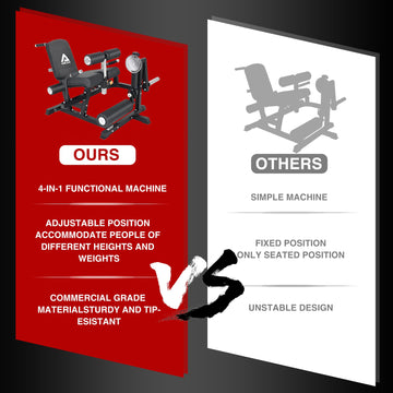 Dual Function Leg Training: Designed for both leg extensions and leg curls, effectively targeting quadriceps and hamstrings